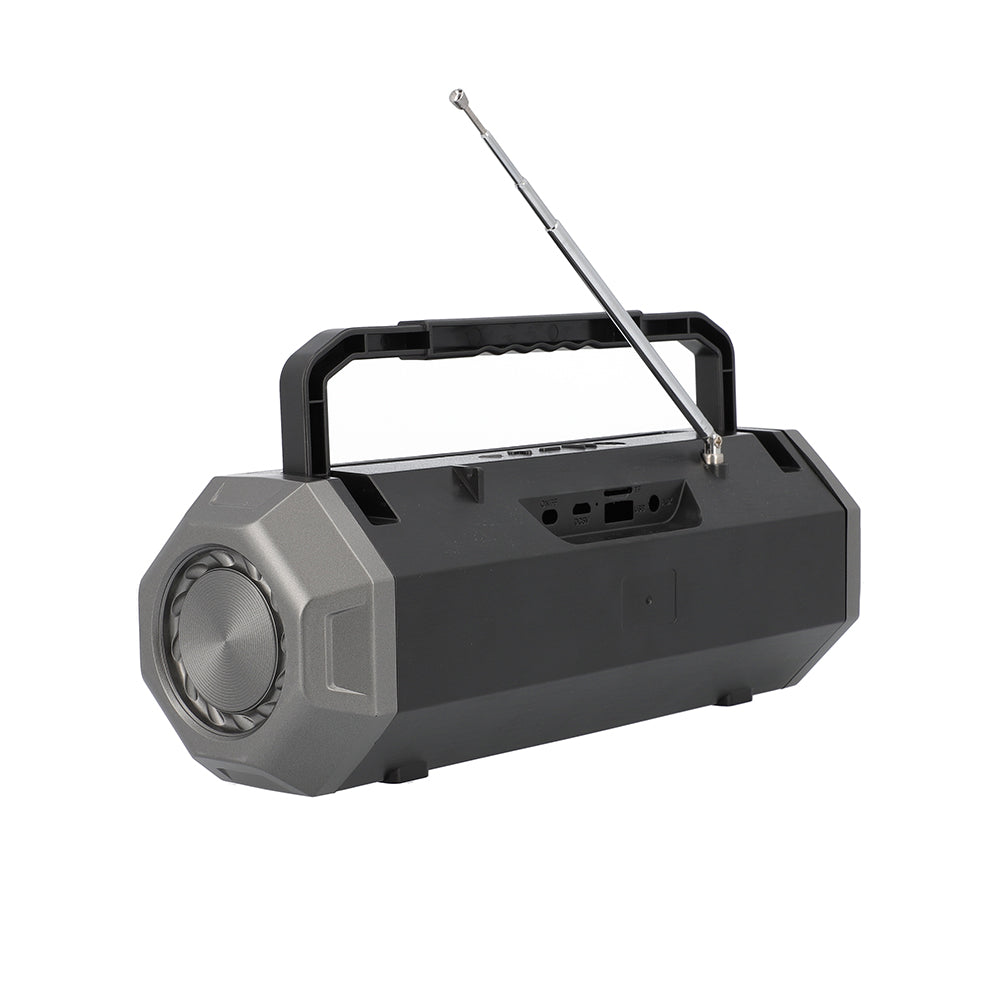 1. Πολυδιάστατη Συνδεσιμότητα: Υποστηρίζει Bluetooth 5.0 για ασύρματη ροή ήχου, micro card, USB drives, και AUX input, προσφέροντας πολλούς τρόπους να απολαύσετε τη μουσική σας.
