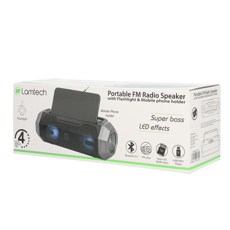 Lamtech Portable Fm Radio Speaker With Flashlight & Mobile Phone Holder