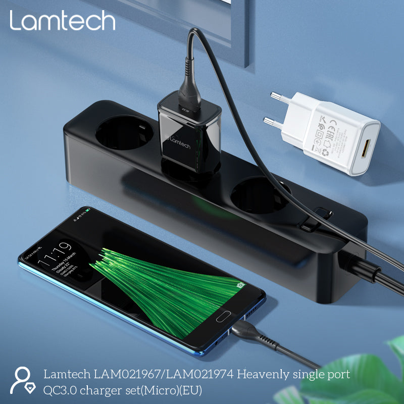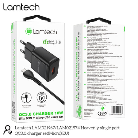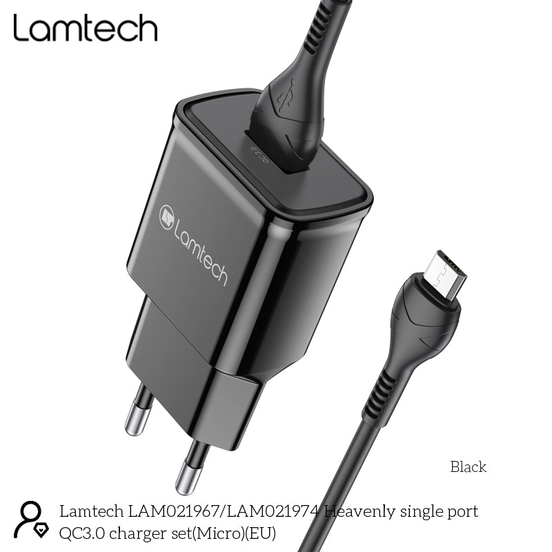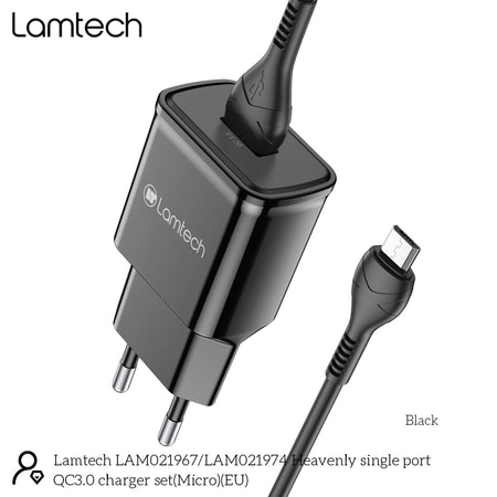 Lamtech Quick Charger Usb3.0 18 W With Micro Usb Cable 1 M Black