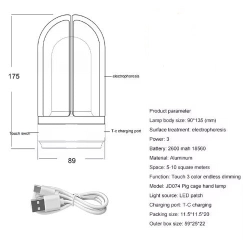 SE LED 17 TARO TABLE BATTERY LAMP LED BLACK RECHARCHEABLE 9x17,5cm 3.5W 2600mah 3CCT CHARGING