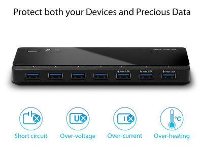 TP-LINK USB hub UH700, 7x θυρών, 5Gbps, 5V/1.5A, USB σύνδεση, μαύρο