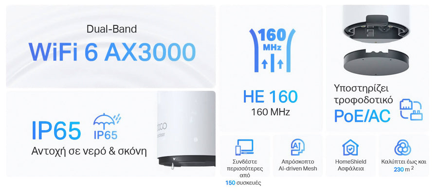 -Συνεργάζεται με όλα τα Decos - Συμβατό με οποιοδήποτε άλλο μοντέλο Deco δημιουργεί ένα Mesh δίκτυο.