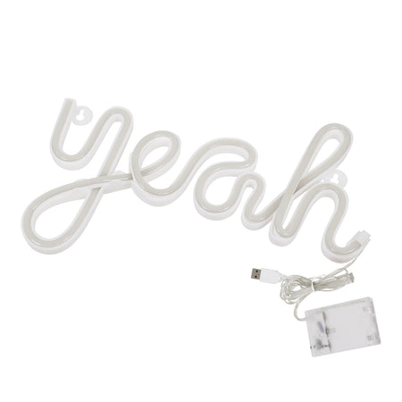 GloboStar® 78589 Φωτιστικό Ταμπέλα Φωτεινή Επιγραφή NEON LED Σήμανσης YEAH 5W με Καλώδιο Τροφοδοσίας USB - Μπαταρίας 3xAAA (Δεν Περιλαμβάνονται) - Κόκκινο