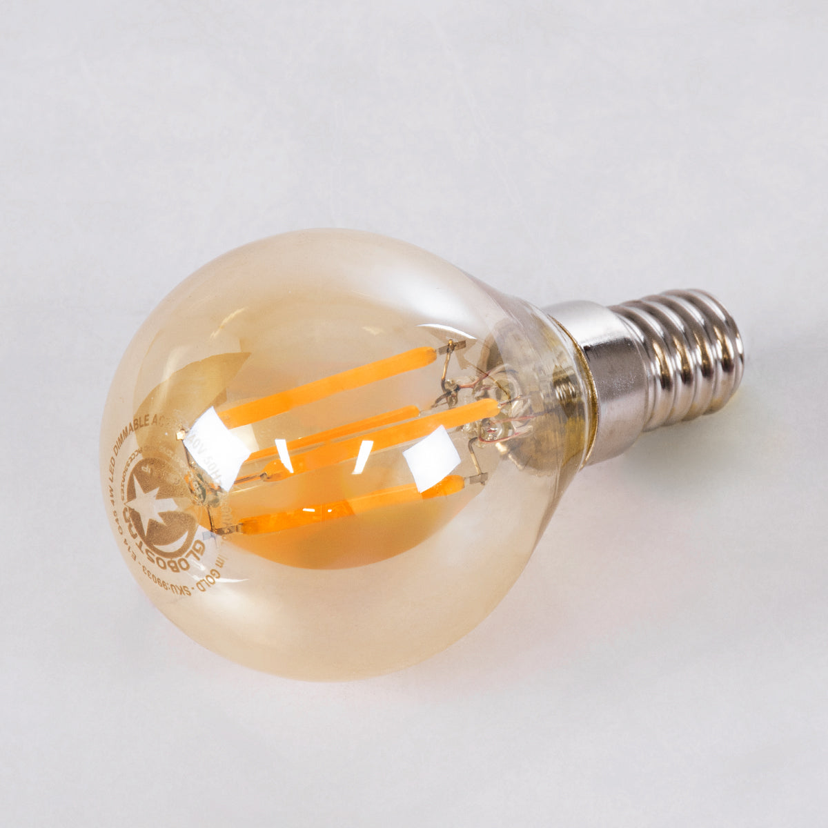GLOBOSTAR® SPHERE 99033 Λάμπα E14 G45 LED 4W 350lm 360° AC 220-240V IP20 Ultra Θερμό Λευκό 2200K Dimmable - Long Filament Chip - Μελί - Μ4.5 x Π4.5 x Υ7.5cm - 3 Χρόνια Εγγύηση