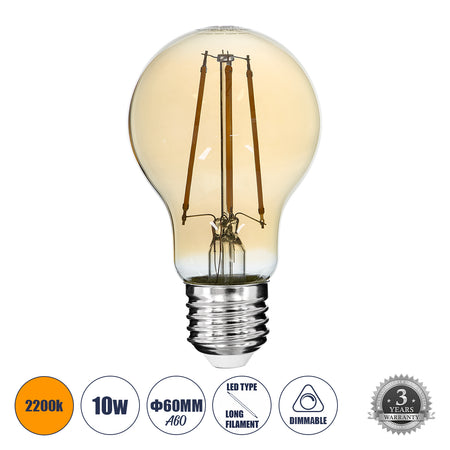 GLOBOSTAR® GLOBE 99038 Λάμπα E27 A60 LED 10W 900lm 360° AC 220-240V IP20 Ultra Θερμό Λευκό 2200K Dimmable - Long Filament Chip - Μελί - Μ6 x Π6 x Υ10.5cm - 3 Χρόνια Εγγύηση