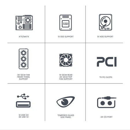 - Αποτελεσματική Ροή Αέρα: Σχεδιασμένη για εξαιρετική ροή αέρα για να διατηρεί τα εξαρτήματα σας δροσερά κατά τη διάρκεια εντατικών παιχνιδιών.