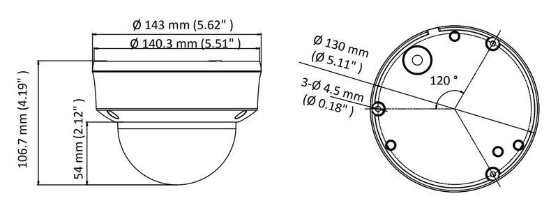 Dimensions: Φ 143 mm x 106.7 mm