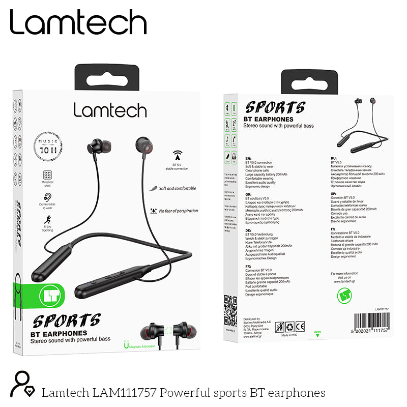 Lamtech Powerful Bluetooth Wireless Sports Earphones Black