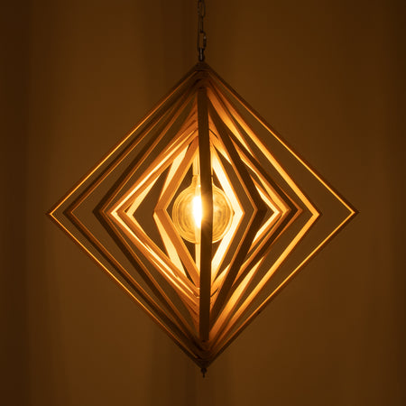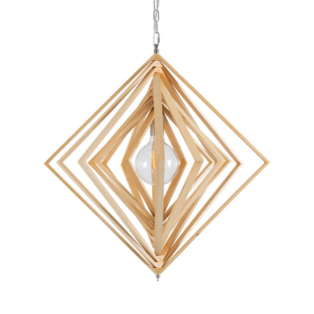 GloboStar® OCTAVE 01431 Μοντέρνο Κρεμαστό Φωτιστικό Οροφής Μονόφωτο Μπεζ Ξύλινο Μ64 x Π64 x Y66cm