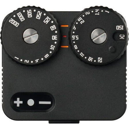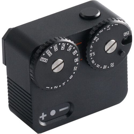 The black, aircraft aluminum TTArtisan Light Meter II is an ultra-compact, cold-shoe mountable light meter designed for analog film cameras. With its sleek, retro profile, it offers simple operation via two easy-access dials and supports shutter speed readings of 1 to 1/2000 of a second, ISO of 25 to 6400, and apertures of f/1 to f/22, all in half-step increments.