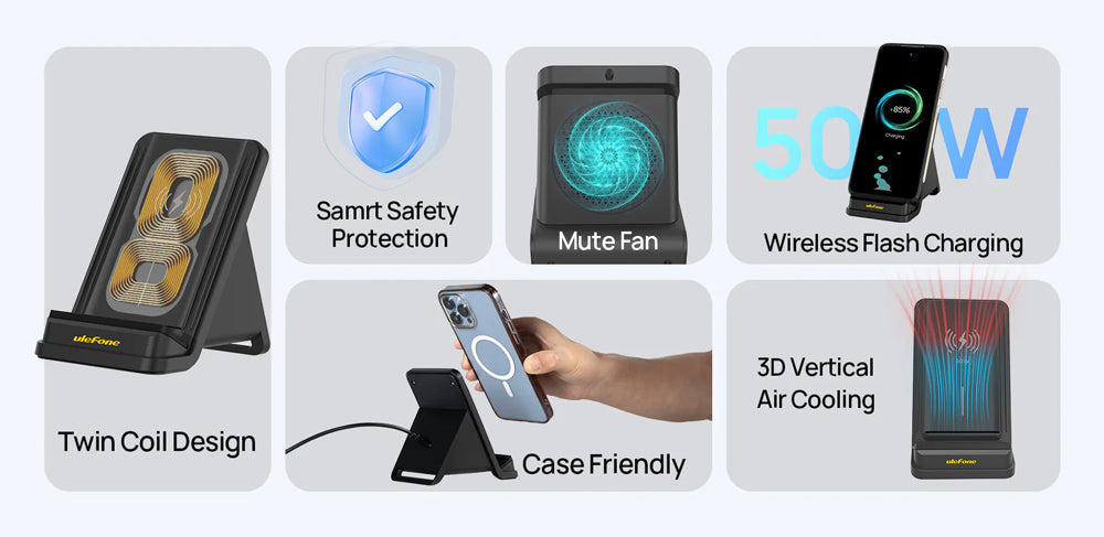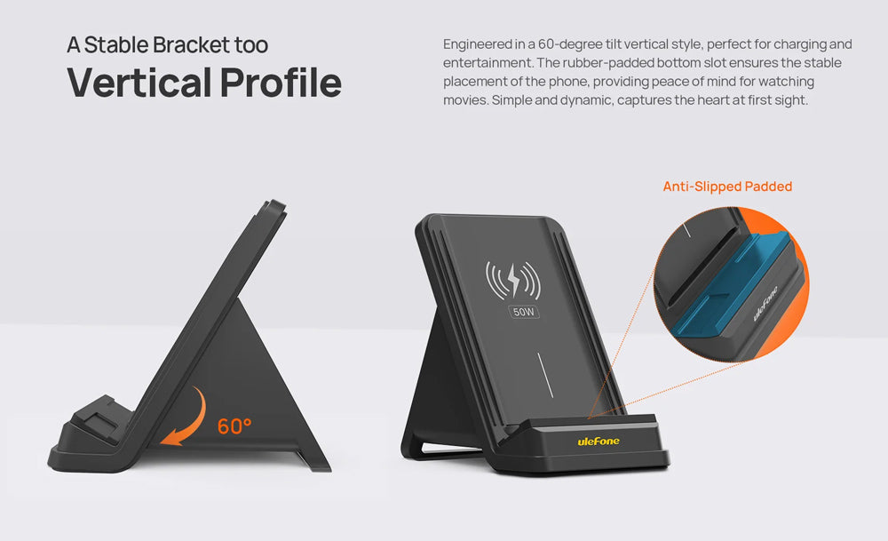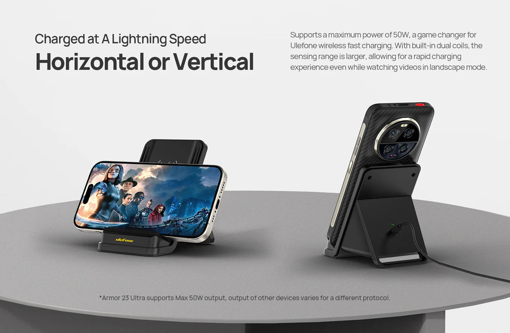 ULEFONE ασύρματος φορτιστής & βάση smartphone WCS01, 50W, μαύρος