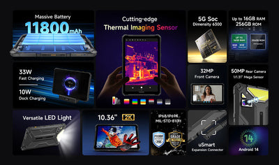 ULEFONE tablet Armor Pad 4 Ultra Thermal, 10.36", 8/256GB, 11800mAh, IP68/IP69K, 5G, μαύρο
