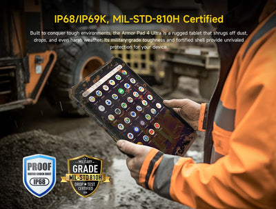 Με πιστοποίηση IP68/IP69K/MIL-STD-810H, το tablet Armor Pad 4 Ultra είναι σχεδιασμένο για να αντέχει σε ακραίες συνθήκες χρήσης και περιβάλλοντα.