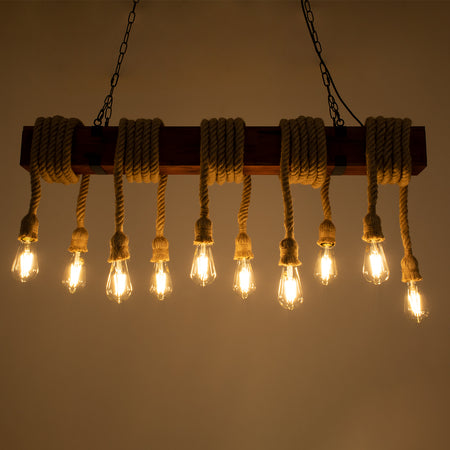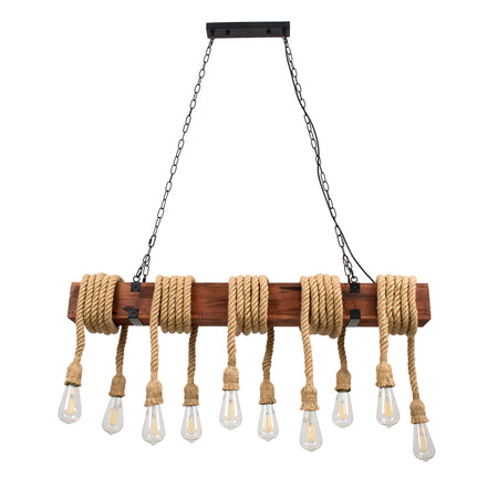 GLOBOSTAR® VIKING 00607 Vintage Κρεμαστό Φωτιστικό Οροφής με Ντουί 10 x E27 AC 220-240V IP20 - Καφε & Μπεζ - Μ108 x Π11 x Υ220cm