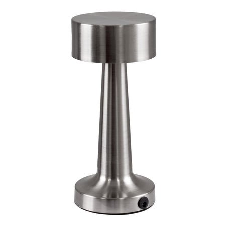 GloboStar® BELLA 76504 Επαναφορτιζόμενο Επιτραπέζιο Φωτιστικό Πορτατίφ LED 1.5W 105lm 120° DC 5V IP44 Θερμό Λευκό 2700K Dimmable Ασημί Αλουμίνιο - Μ9 x Π9 x Υ21cm - 2 Xρόνια Εγγύηση
