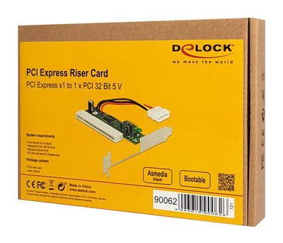 DELOCK κάρτα επέκτασης PCI Express σε PCI 32 Bit 5V 90062, Asmedia chip
