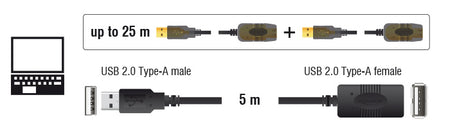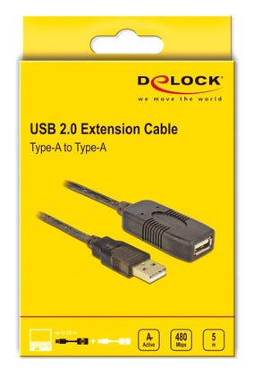 DELOCK καλώδιο USB 2.0 αρσενικό σε θηλυκό 82308, active, 5m, μαύρο