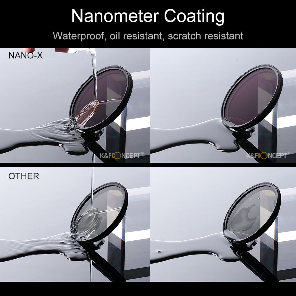 K&F Concept 46mm Nano-X, Green Coated, Waterproof, Anti-Reflection Variable Fader ND2-ND32 Filter
