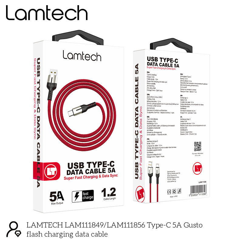 Lamtech Usb Type C Data Cable 5 A 1,2 M Red