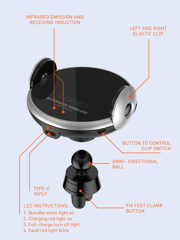 Συγκρατεί το smartphone σταθερό και ασφαλές με κλιπ συγκράτησης ενώ παράλληλα το φορτίζει ασύρματα με απόδοση έως 15W.