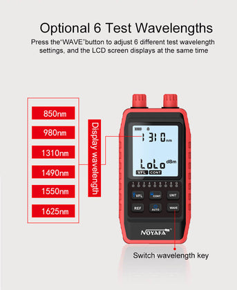 NOYAFA tester καλωδίων οπτικής ίνας NF-908L, 850-1625nm, -60~8dBm