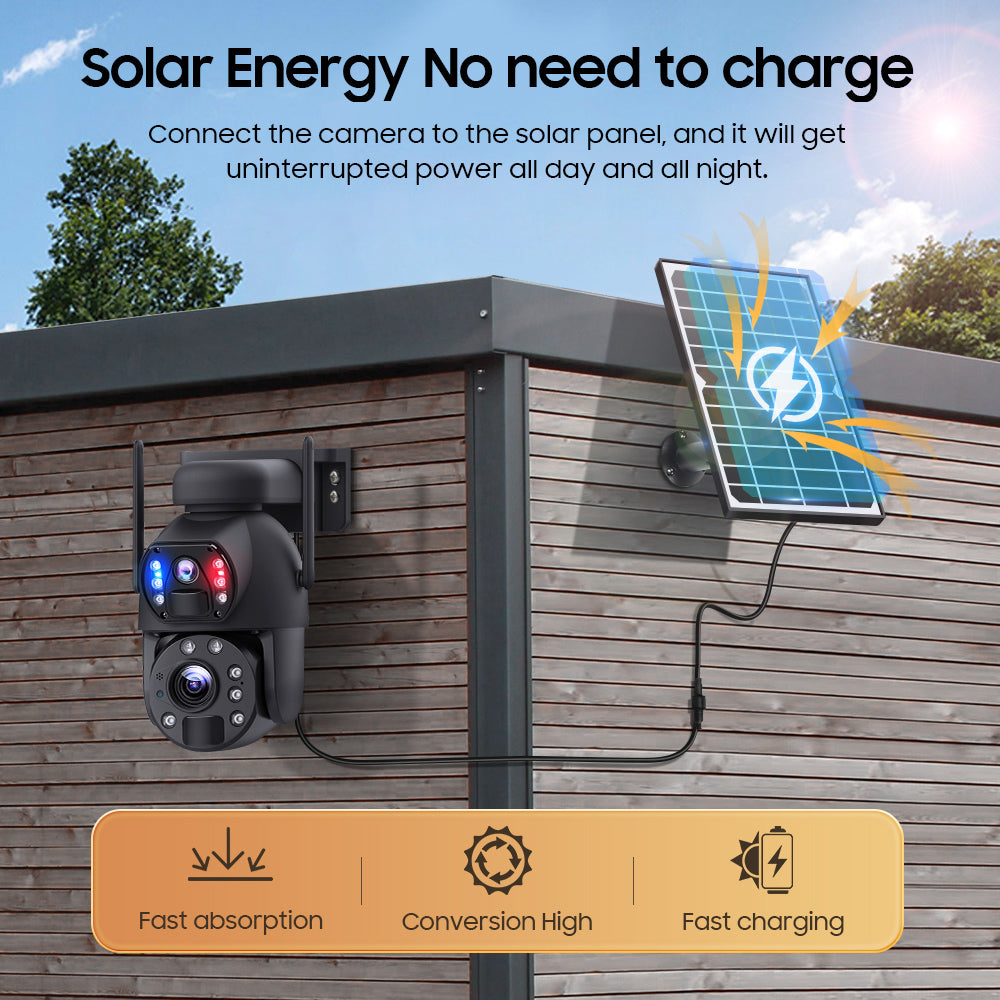 SECTEC smart ηλιακή κάμερα ST-5986M, 3MP dual lens, 20x zoom, WiFi, SD, PTZ
