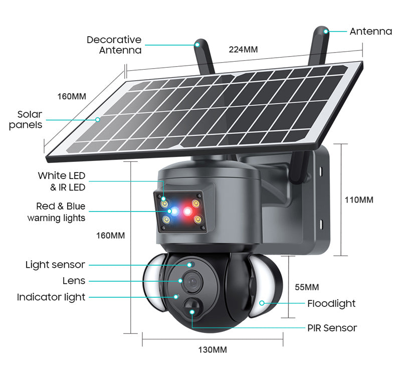 Day and night conversion: 6pcs floodlight support Automatic switch, Red+Blue Alarm irs, 4pcs white irs