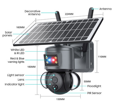SECTEC smart ηλιακή κάμερα ST-S528M-4G-3MASR με προβολείς, 3MP, 4G, PTZ