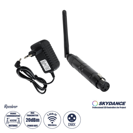 GLOBOSTAR® SKYDANCE-DM-WR 71578 DMX512 Ασύρματος Δέκτης RF 2.4Ghz ISM GFSK 20dBm 400m Θηλυκό XLR3 DC 5V IP20 - Μ1.9 x Π1.9 x Υ22cm - 5 Χρόνια Εγγύηση