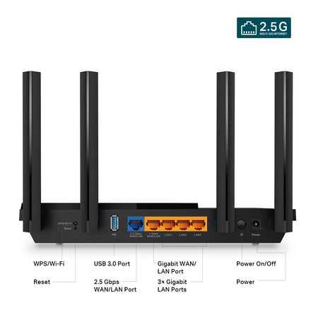 -Ethernet Ports: 1x 2.5 Gigabit WAN/LAN Port, 1x Gigabit WAN/LAN Port, 3x Gigabit LAN Ports