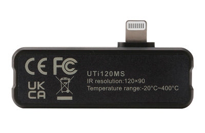 Το UTi120MS είναι μια μικρή σε μέγεθος, επαγγελματική συσκευή θερμικής απεικόνισης, η οποία συνδέεται με iPhone μέσω της θύρας Lightning.