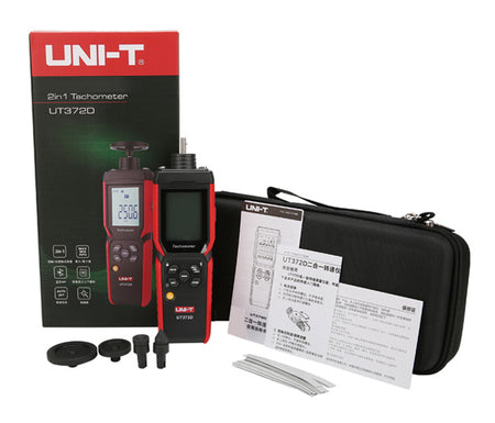 Το ψηφιακό ταχόμετρο UT372D είναι ένα αξιόπιστο και ασφαλές εργαλείο, το οποίο συνδυάζει λειτουργία με επαφή και χωρίς επαφή. Χρησιμοποιείται κυρίως για την μέτρηση στροφών ανά λεπτό (RPM), την συχνότητα, την επιφανειακή ταχύτητα και το μήκος σε τομείς κινητήρων, ανεμιστήρων, αυτοκινήτων, χαρτοποιίας κ.λπ.