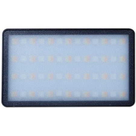 The Weeylite RB08P Mini RGB Portable LED Light features 52 LEDs in a lightweight, compact form. Select from 360 colors in RGB mode or adjust the color temperature from 2500 to 8500K. The light is dimmable from 100% brightness to 10% in 1% increments. The fixture has a lightweight aluminum chassis and incorporates two 1/4"-20 threaded mounting holes, and it features one on/off and four control buttons on the side. The built-in OLED screen on the back displays the mode number and battery gauge, as well as associated info such as color temperature, RGB hue and saturation, or effect setting. There are several built-in color and light effects such as lightning, candlelight, or police/fire/ambulance emergency lights.