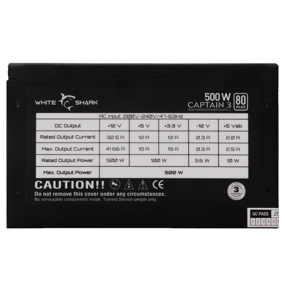 Με τον μη αρθρωτό σχεδιασμό και το κομψό μαύρο φινίρισμα, το White Shark CAPTAIN-3 PSU αποτελεί την τέλεια λύση τροφοδοσίας για gamers που χρειάζονται αποδοτικότητα, αξιοπιστία και στυλ. Διατηρήστε το σύστημά σας δροσερό, ασφαλές και τροφοδοτούμενο με αυτό το εξαιρετικό τροφοδοτικό.