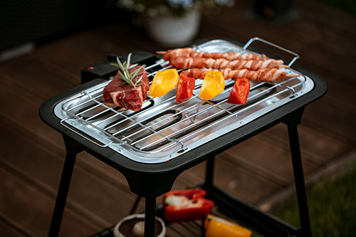 Με την πρώτη ματιά, μπορεί να παρατηρηθεί ότι πρόκειται για ένα μοντέλο διαφορετικό από αυτά που διατίθενται στην αγορά. Το περίβλημα από πλαστικό υψηλής ποιότητας θα το κάνει να διαρκέσει πολύ. Μοιάζει με παραδοσιακές ψησταριές με κάρβουνο, αλλά είναι πολύ πιο απλό στη χρήση. Επιπλέον, το σετ περιλαμβάνει βάση βάσης, που διευκολύνει τη χρήση του σε εξωτερικούς χώρους. Το συνημμένο είναι απλό και είναι χρήσιμο όταν δεν υπάρχουν πάρα πολλά τραπέζια στην περιοχή! Διαφορετικά, μπορείτε απλά να το βάλετε στην επίπεδη επιφάνεια. Η μέγιστη ισχύς γκριλ είναι 2400 W, κάτι που εγγυάται ότι μπορείτε να ψήσετε γρήγορα ακόμα και μεγάλα κομμάτια κρέατος. Οι διαστάσεις πλέγματος 37x21 cm θα βοηθήσουν στην προετοιμασία φαγητού για όλη την οικογένεια! Μια ασυνήθιστη λύση που χρησιμοποιείται σε αυτή τη σχάρα είναι μια λεκάνη σταγόνας νερού κάτω από τη σχάρα και το θερμαντικό στοιχείο για τη διατήρηση σταθερής θερμοκρασίας. Αυτό σημαίνει ότι χρησιμοποιούμε λύσεις κοντά στη φύση για να ετοιμάσουμε πιάτα και δεν χρειάζεται να ανησυχούμε για το χάος που σχετίζεται με τη χρήση άνθρακα!
