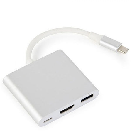 Αυτός ο προσαρμογέας 3 σε 1 USB-C προσφέρει την απόλυτη ευκολία για σύνδεση με ποικιλία συσκευών. Περιλαμβάνει θύρα φόρτισης USB τύπου C, θύρα δεδομένων USB 3.0 και έξοδο βίντεο HDMI για ευέλικτες συνδέσεις με υπολογιστές, κινητά τηλέφωνα, τηλεοράσεις και άλλα περιφερειακά.