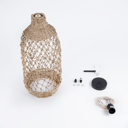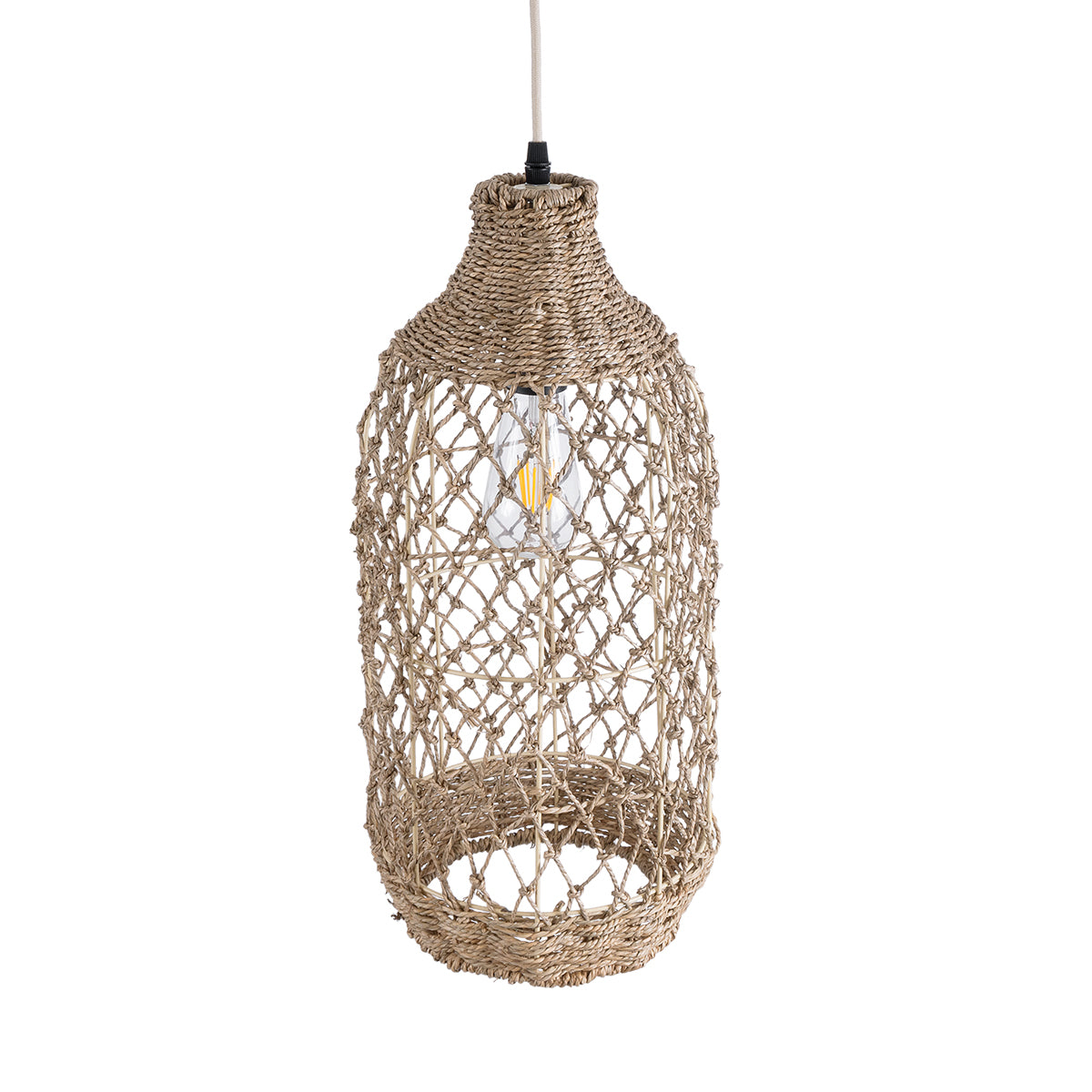 GLOBOSTAR® ECUADOR 02116 Boho Κρεμαστό Φωτιστικό Οροφής με Ντουί 1 x E27 AC 220-240V IP20 - Μπεζ - Μ23 x Π23 x Υ50cm