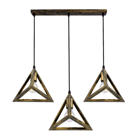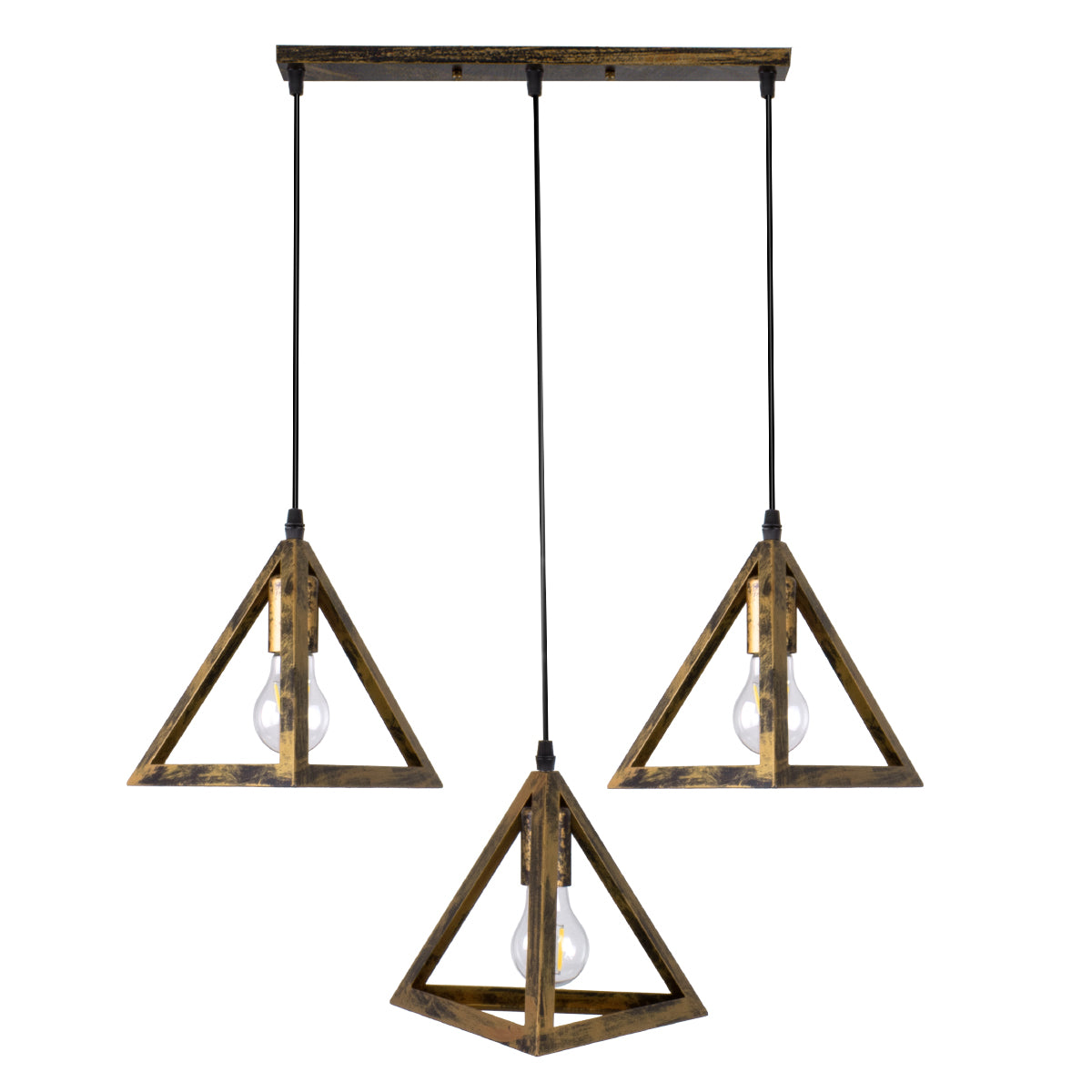 GLOBOSTAR® TRIANGLE 00624 Μοντέρνο Κρεμαστό Φωτιστικό Οροφής με Ντουί 3 x E27 AC 220-240V IP20 - Μπρούτζινο - Μ70 x Π22 x Y130cm