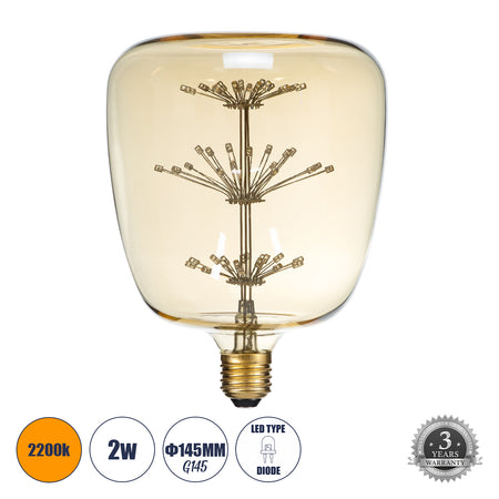 GLOBOSTAR® BARREL 99209 Λάμπα E27 G145 LED 1.6W 140lm 360° AC 220-240V IP20 Ultra Θερμό Λευκό 2200K - Diode HP Filament Chip - Μελί - Μ14.5 x Π14.5 x Υ19cm - 3 Χρόνια Εγγύηση