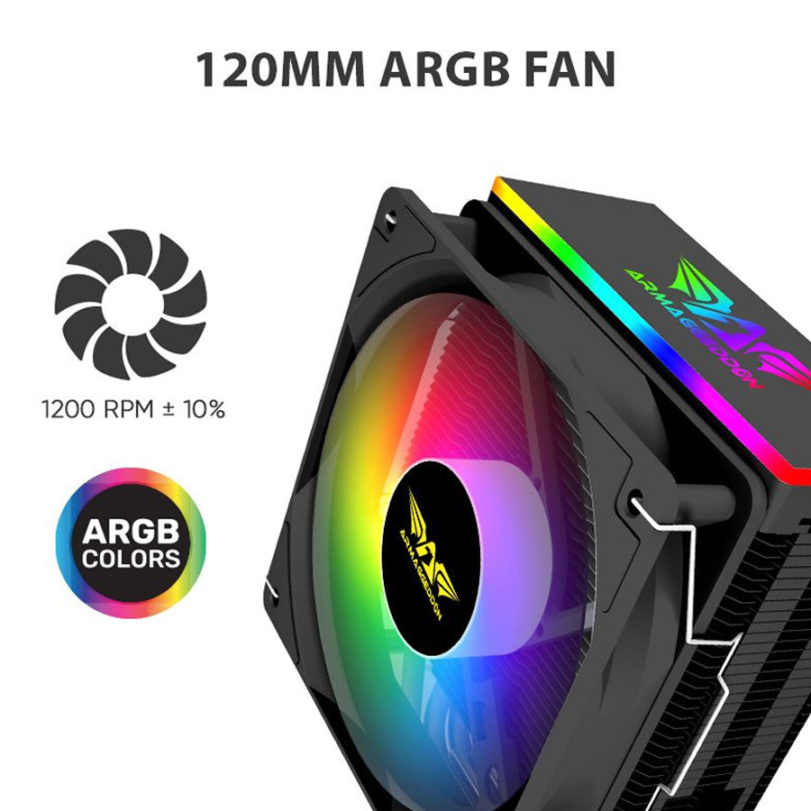 Armaggeddon Argb Silent 12 Cm Cpu Cooling Fan 4 Heat Pipes Black