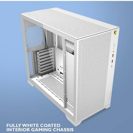 • Σχεδίαση Full ATX με λευκό χρώμα: Η θήκη έχει μοντέρνα εμφάνιση με λευκό χρώμα, ιδανική για να ενσωματωθεί σε διάφορα gaming setups.