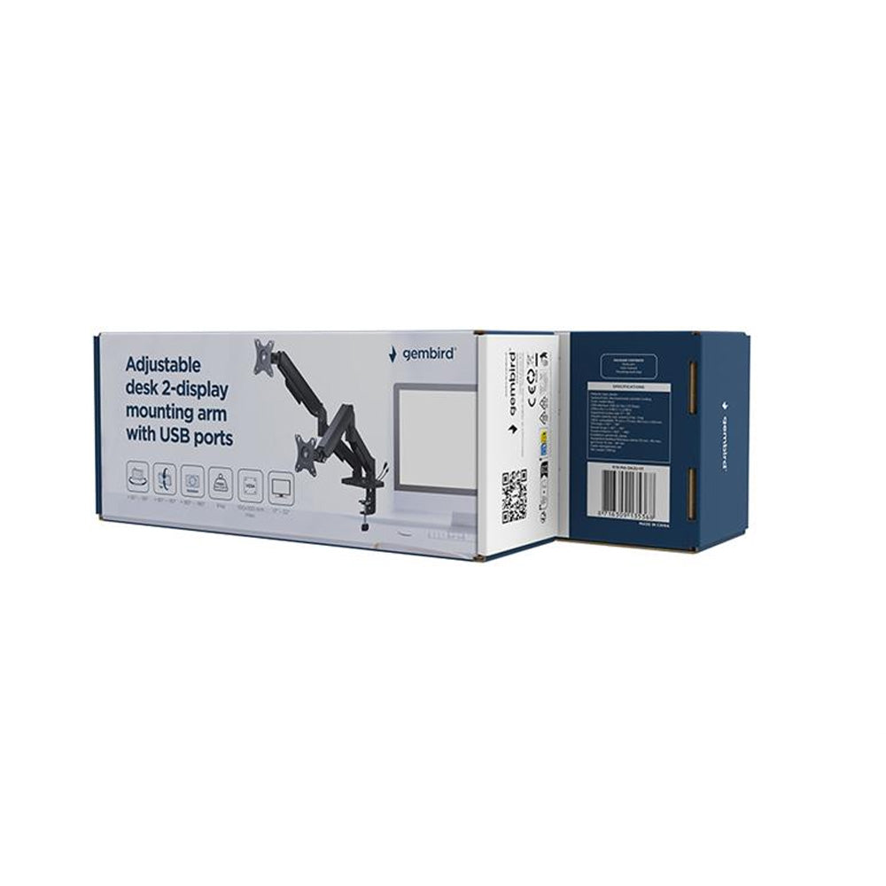 Ρυθμιζόμενος Βραχίονας Στήριξης Διπλής Οθόνης με Θύρες USB, 17" – 32"