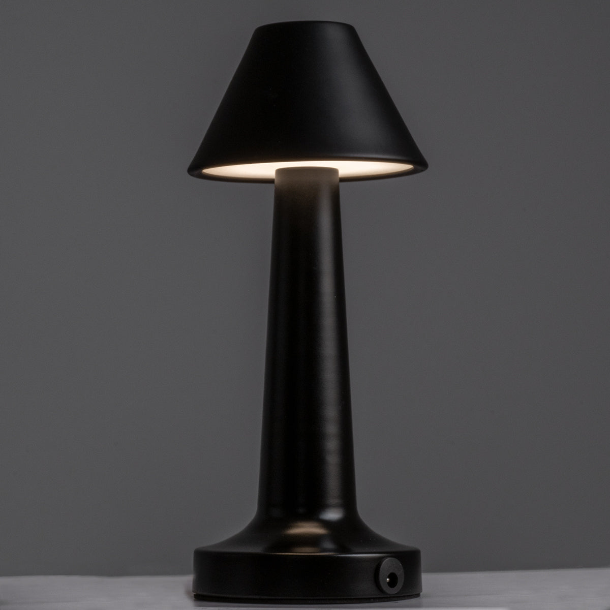 GloboStar® MOLLY 76515 Επαναφορτιζόμενο Επιτραπέζιο Φωτιστικό Πορτατίφ LED 1.5W 105lm 120° DC 5V IP44 Θερμό Λευκό 2700K Dimmable Μαύρο Αλουμίνιο - Μ10 x Π10 x Υ23cm - 2 Xρόνια Εγγύηση