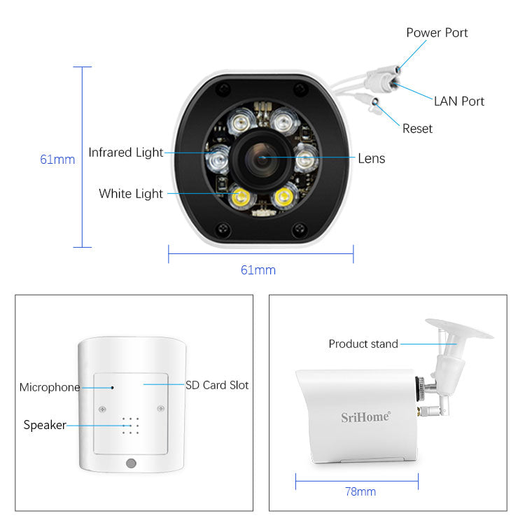 Srihome Poe Outdoor Ip Camera 5 Mp