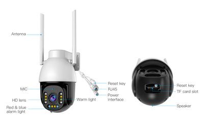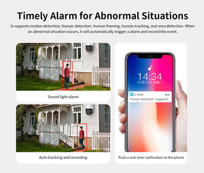 -Alarm detection: Motion detection, human detection, human framing, human tracking, siren sound, and area detection