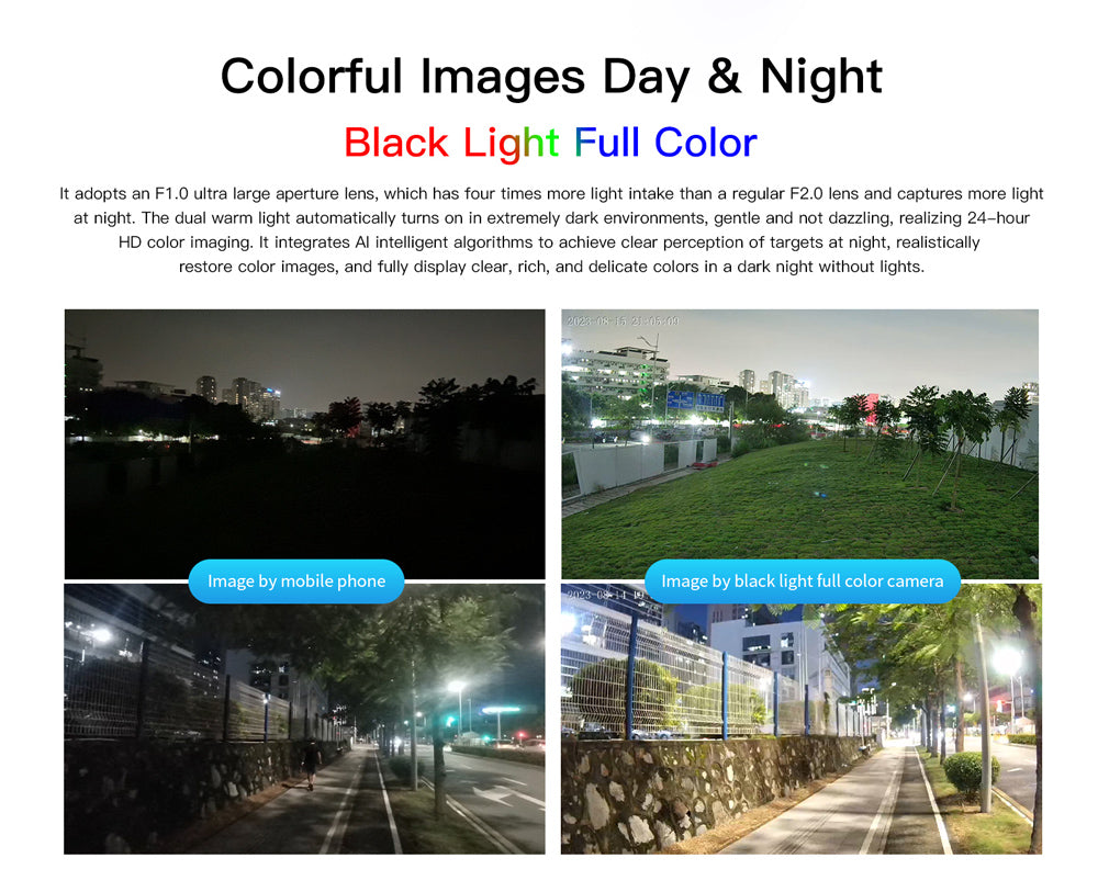 -IR control: No IRCUT, full color night vision, automatically adjusting the brightness of the lights according to the environment