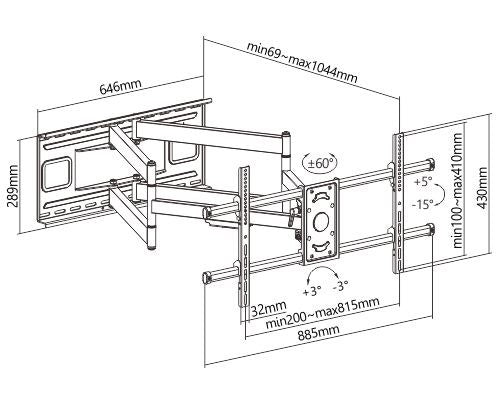 BRATECK επιτοίχια βάση τηλεόρασης LPA49-486XLD, 43-90", 80kg, heavy duty, full motion