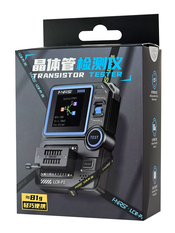 Το LCR-P1 είναι ένα transistor tester υψηλής ακρίβειας, πολλαπλών λειτουργιών. Αυτή η συσκευή επιτρέπει τον εντοπισμό και την ανάλυση της απόδοσης και των χαρακτηριστικών ημιαγωγών εξαρτημάτων όπως transistors, δίοδοι, triacs και field-effect transistors (FETs).