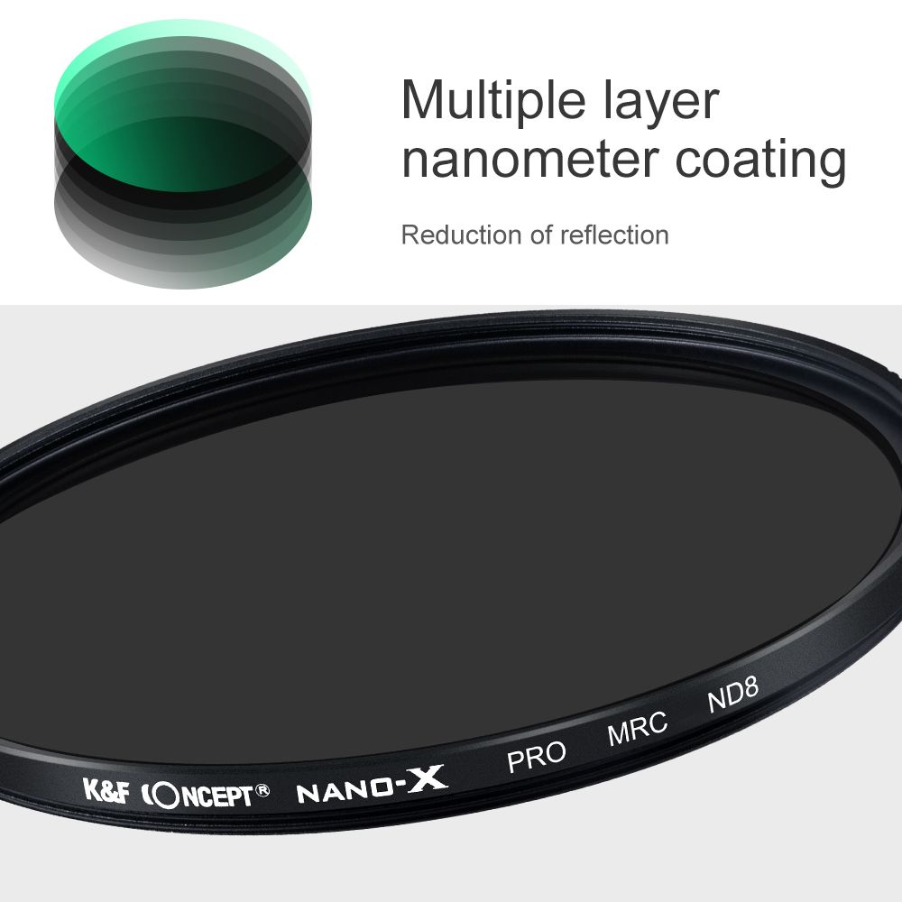 K&F Concept 82mm Nano-X ,Green Coated,Waterproof, Scratch-Resistant, Anti-Reflection ND8 Filter