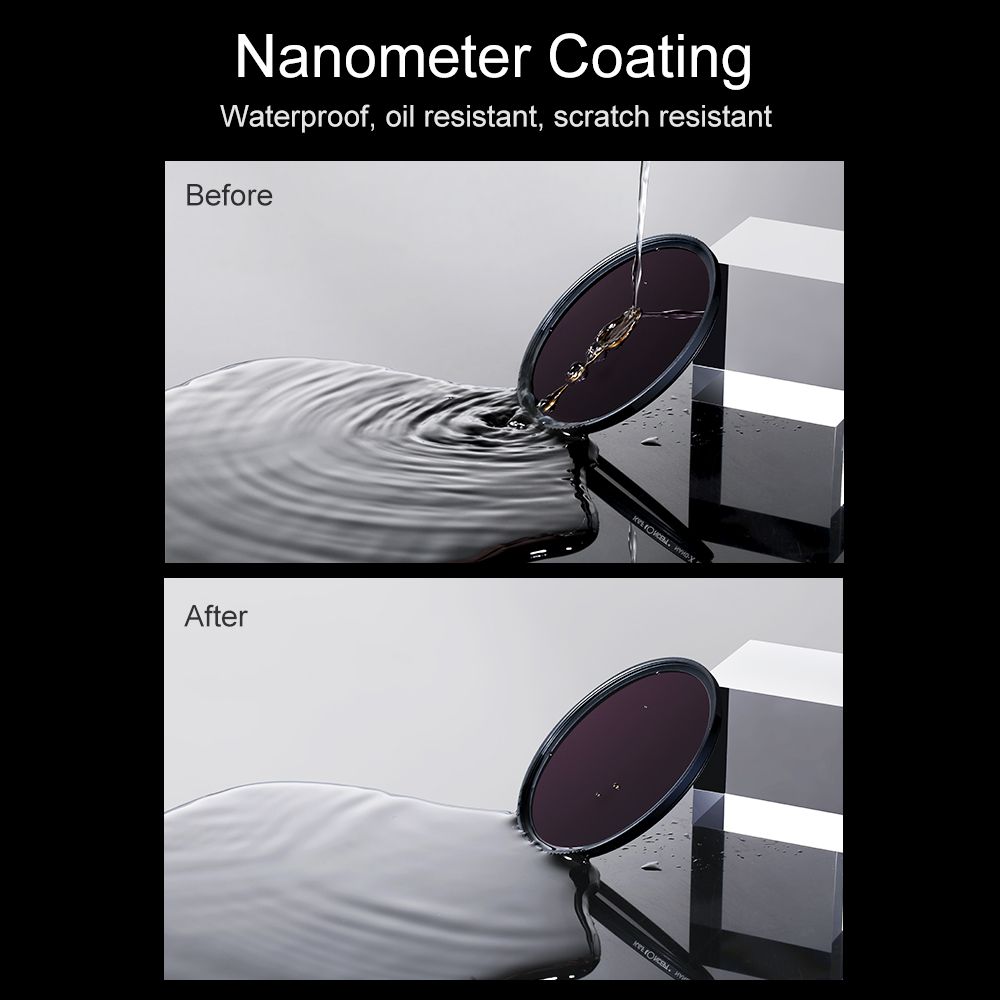The material of the filter is top-grade optical glass, which adopts double-sided multi-layer enhanced coating, which can effectively reduce the reflection on the surface of the filter. It greatly reduces the glare caused by the reflection of the external line of the long-exposure lens and ensures the first-class image quality.